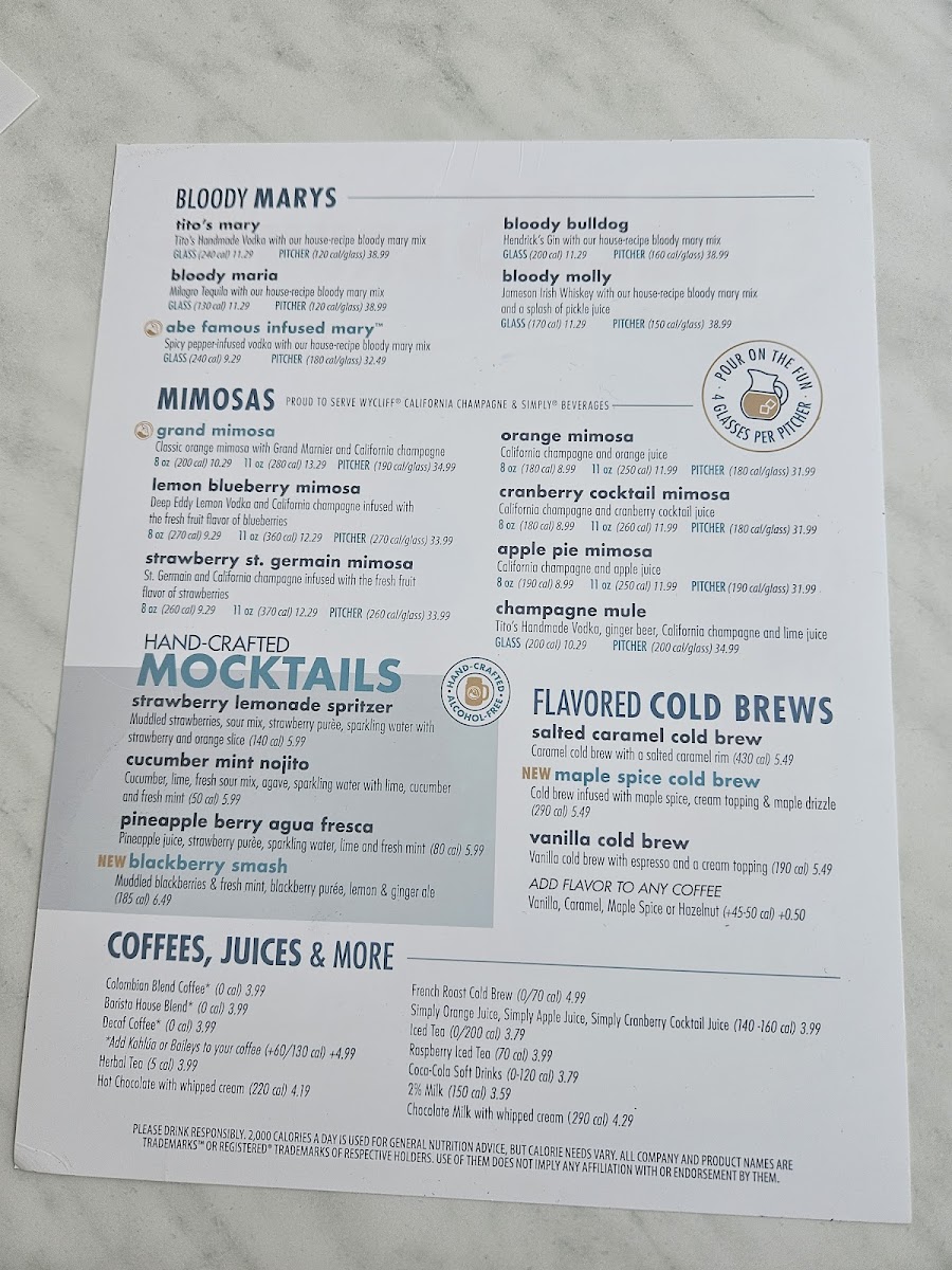 - Signature Drinks: Pair your meal with specialty cocktails such as the Another Broken Egg Bloody Mary.